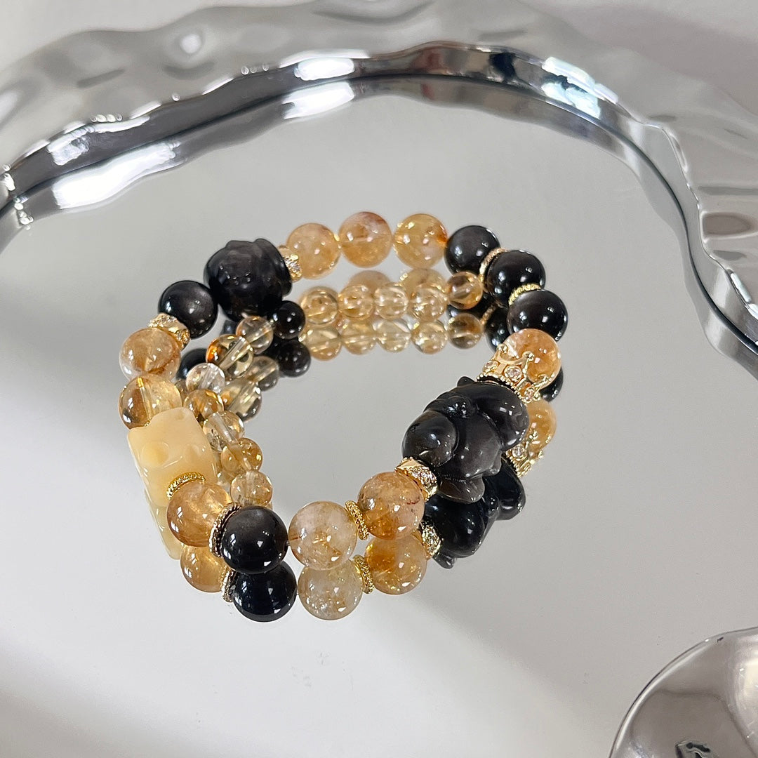 Energy Empowerment (Honey - Cream Yellow Pagoda Quartz × Silver Sheen Obsidian)