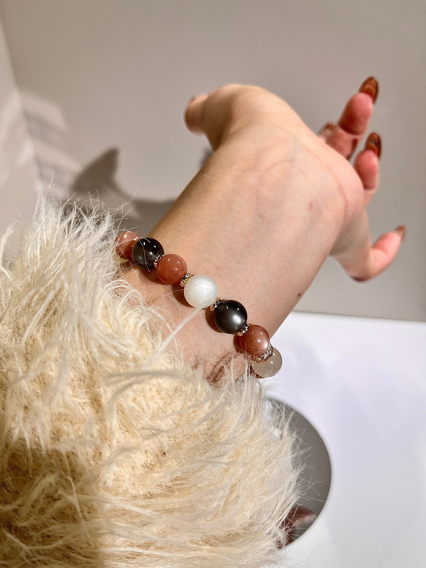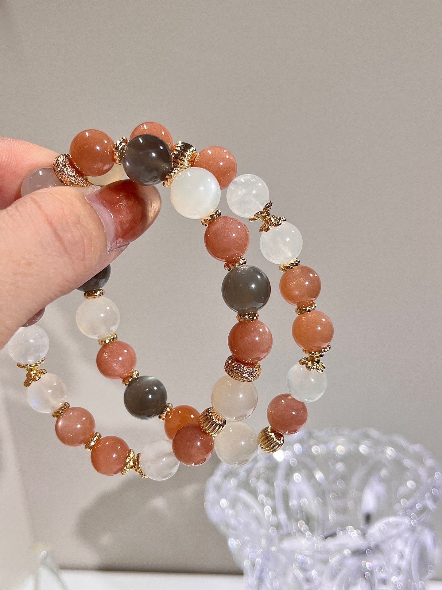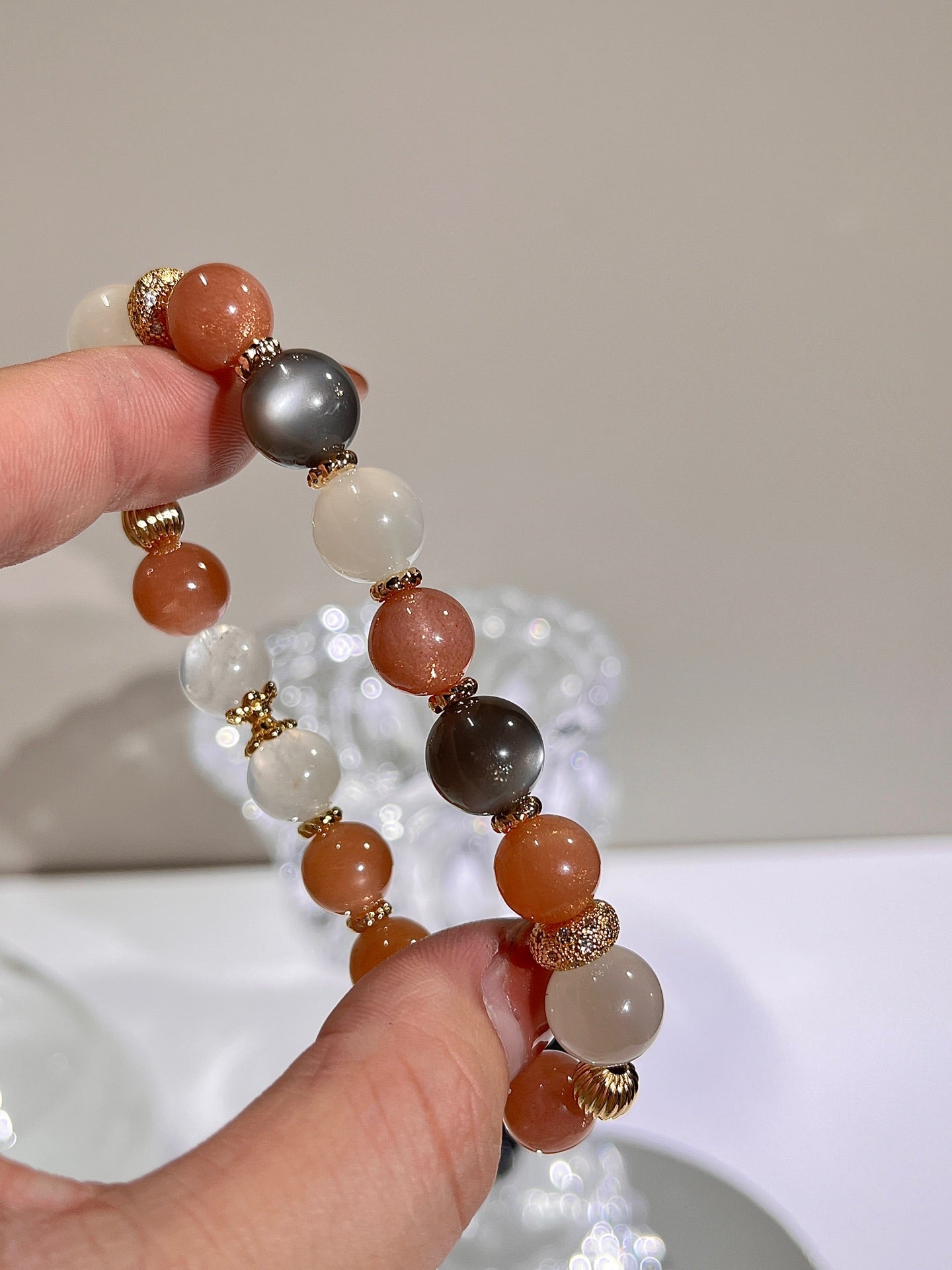 Energy harmonization (Warm soothing of Orange Moonstone × Cool purification of Blue Moonstone × Pure balancing of White Moonstone × Mysterious protection of Black Moonstone)