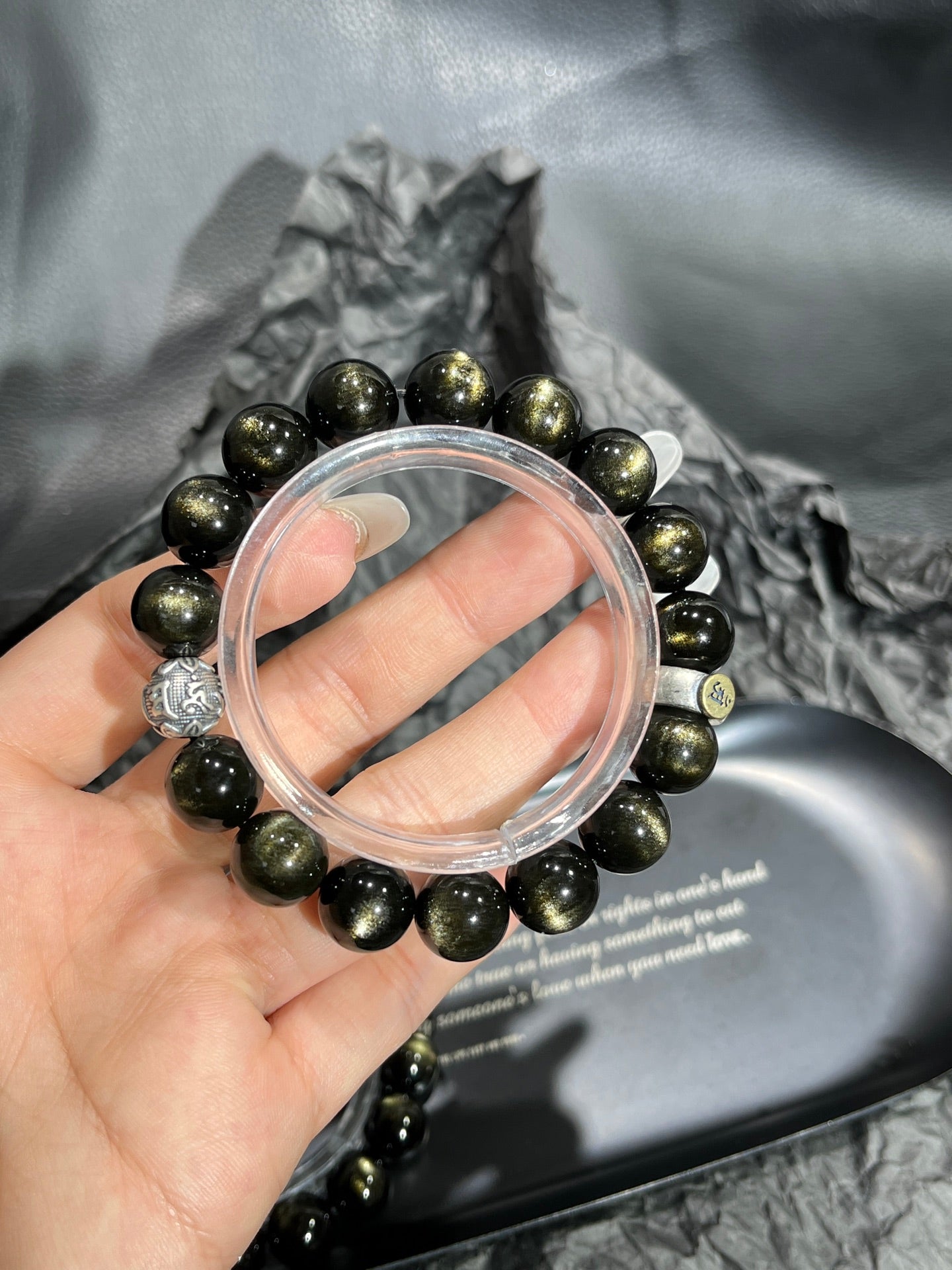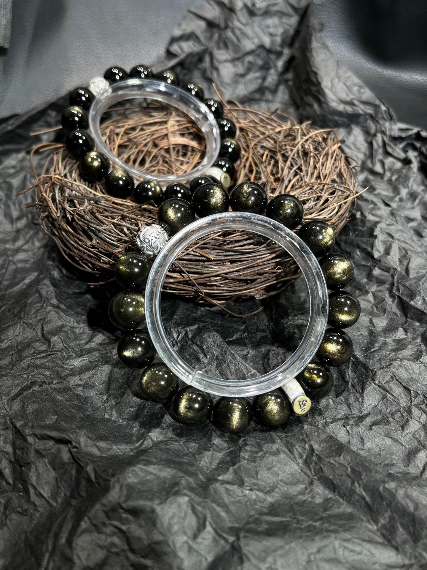 Golden Obsidian with Personal Buddha Statue, Size 10m~12m, Available as Couple Sets, Paired with 925 Sterling Silver