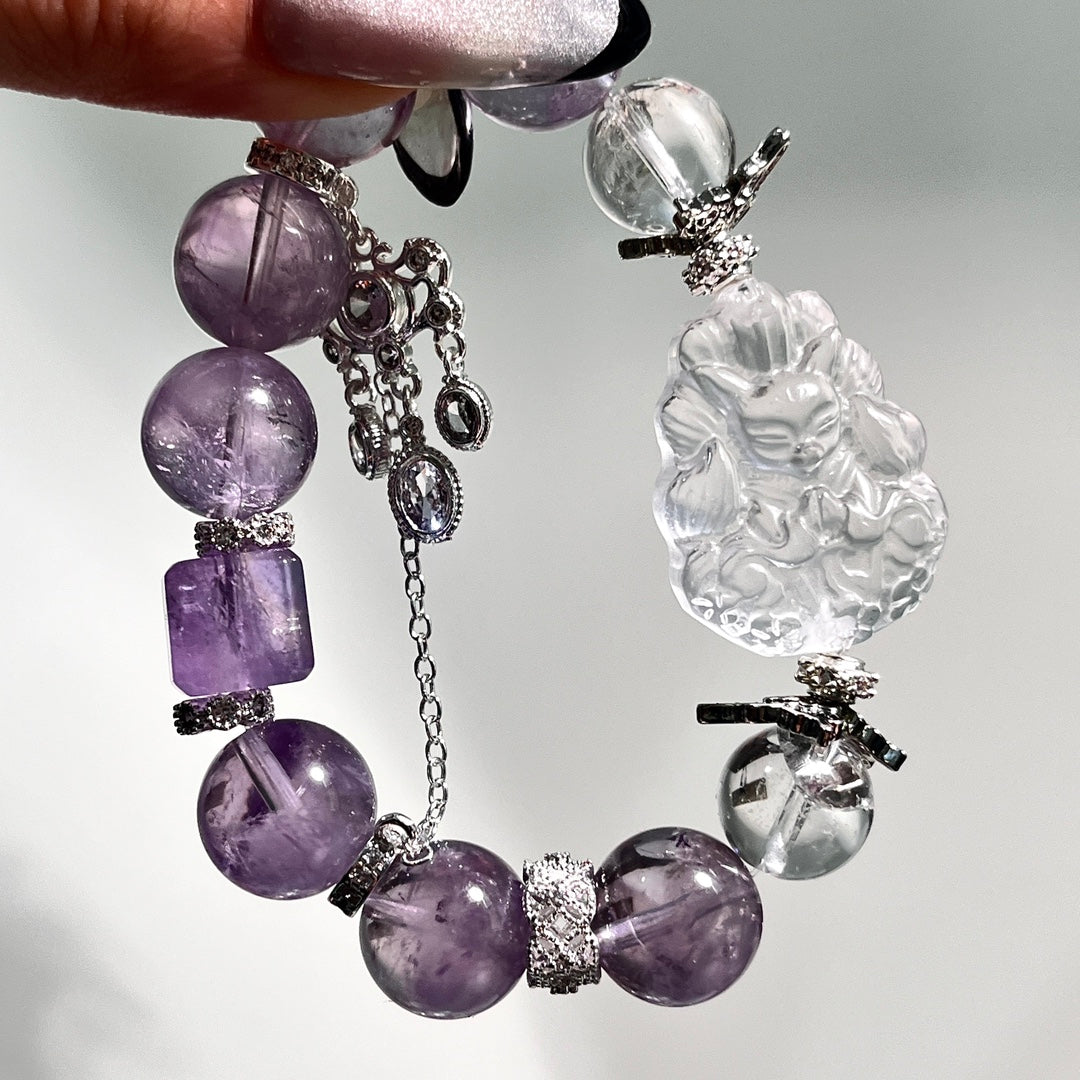 Intuition Awakening (Spiritual Guidance of Purple Rabbit Fur Quartz × Mysterious Power of White Quartz Nine-Tailed Fox)