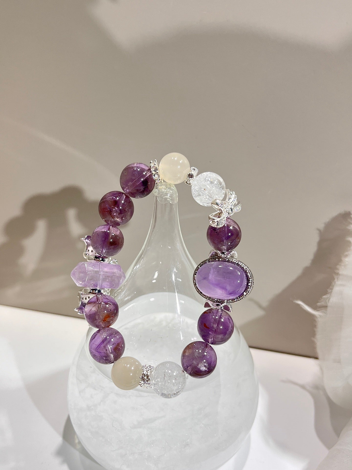 Emotional Soothing (White Moonstone × Lavender Crystal Column)