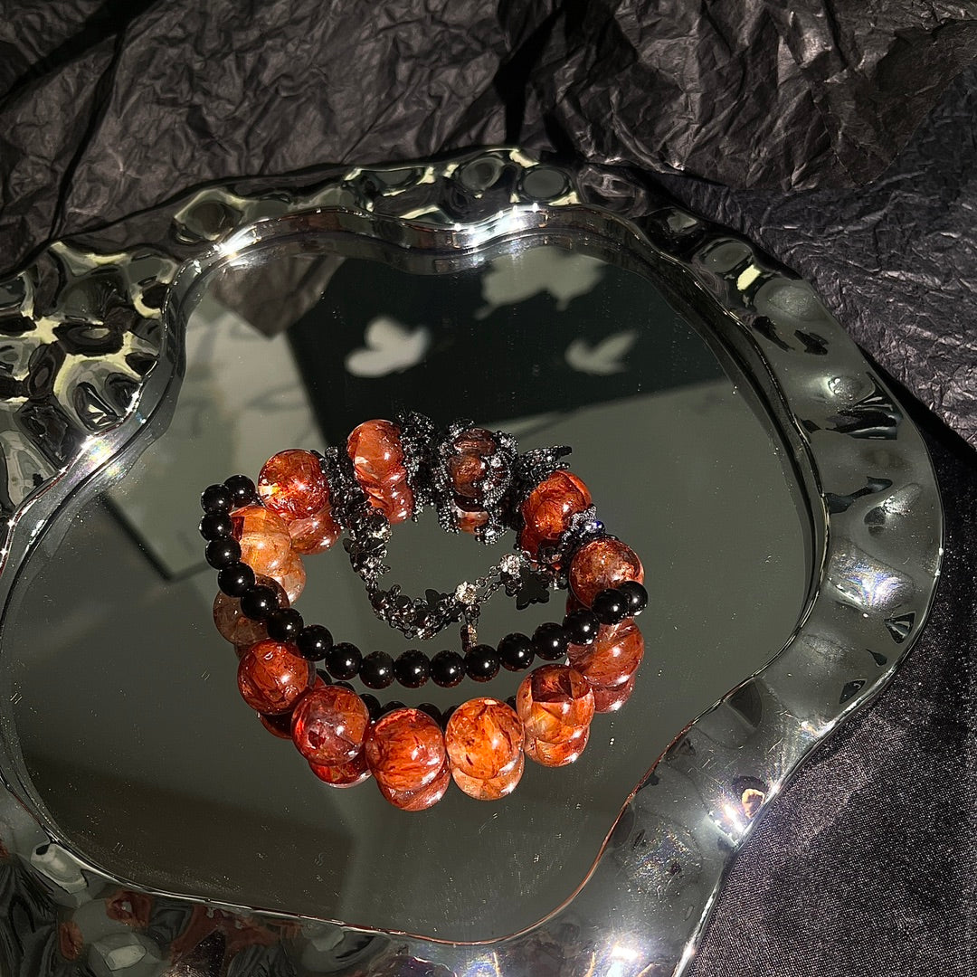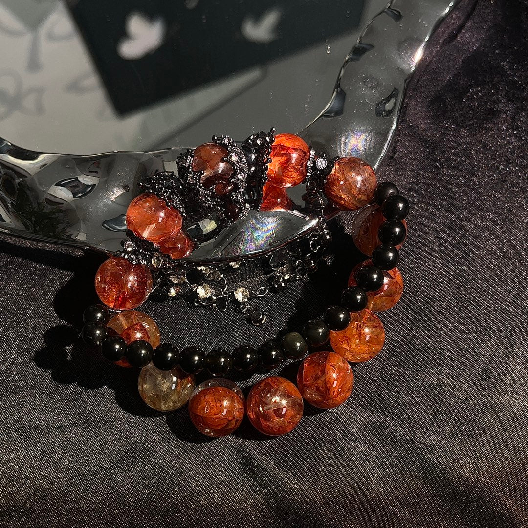 Spiritual purification (Obsidian absorbing negative energy × White and Red Flower Agate soothing the mind)