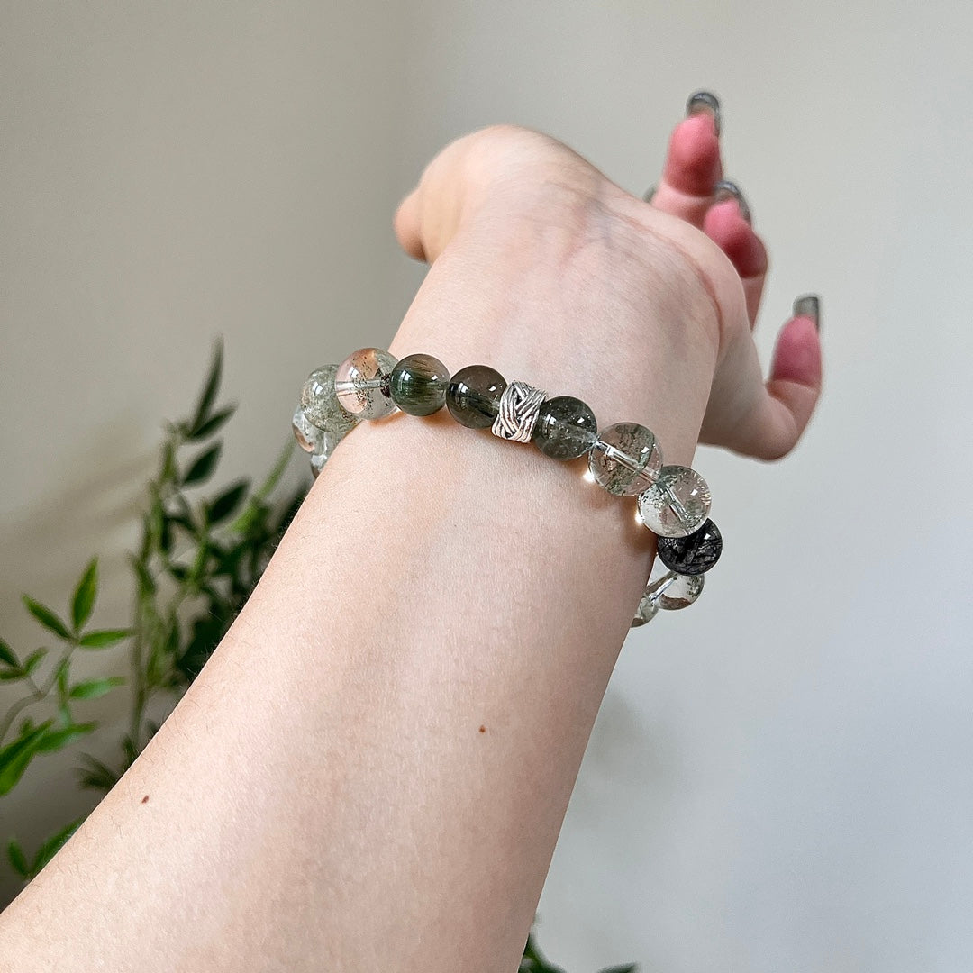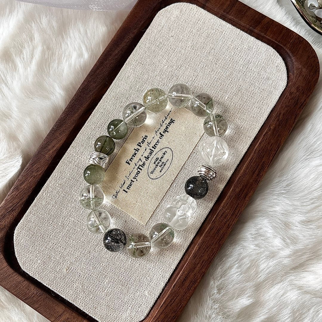Green Phantom / Green Rabbit Fur Quartz / White Crystal Pixiu Copper Coin / Black Hair Quartz, 10 - 12M
