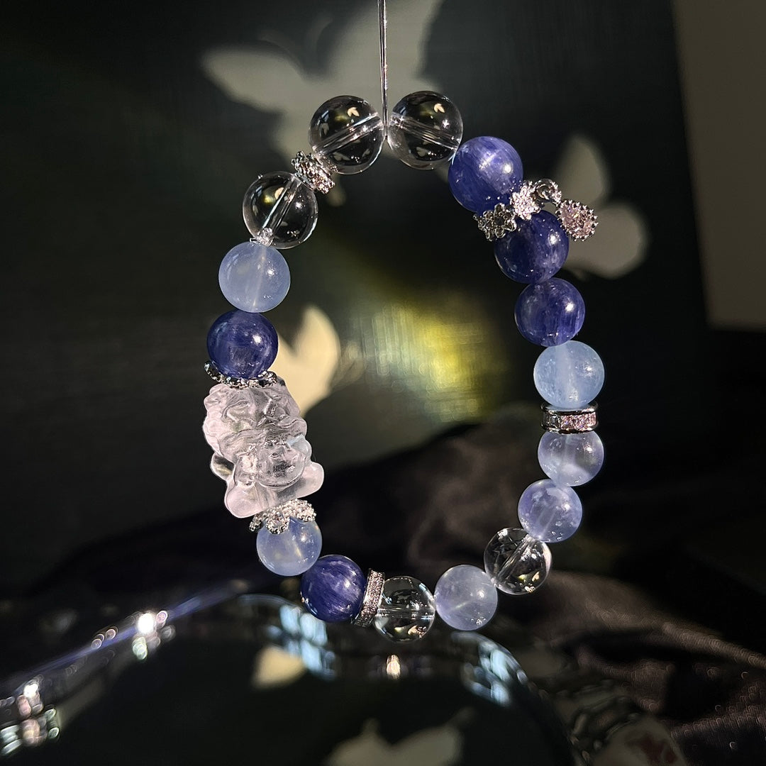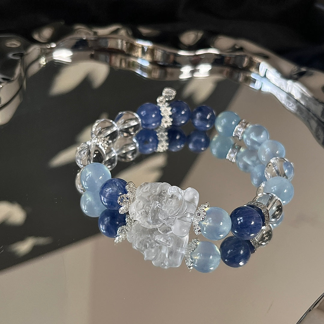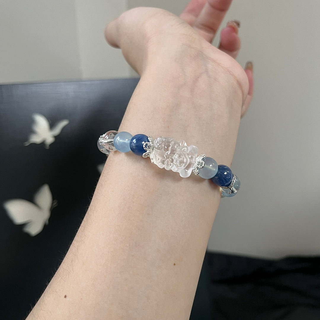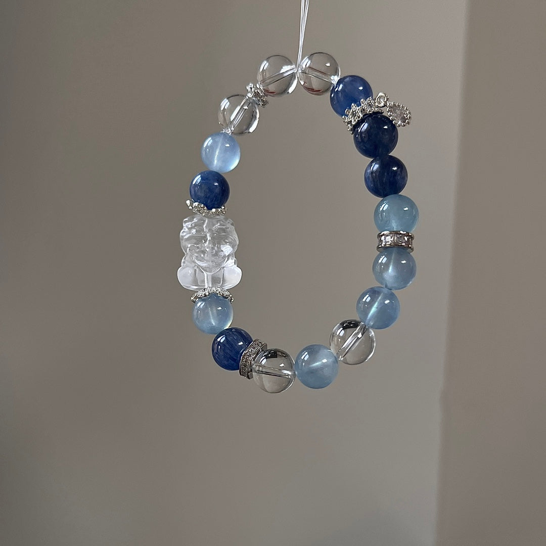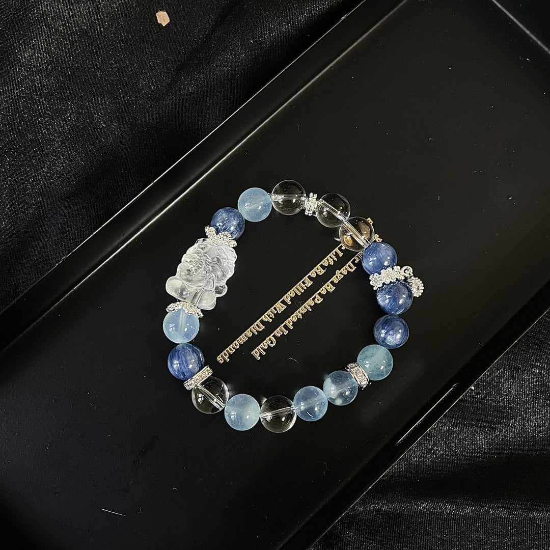 Blue Quartz / Clear Quartz / Aquamarine / Clear Quartz Gold-devouring Beast Ornament