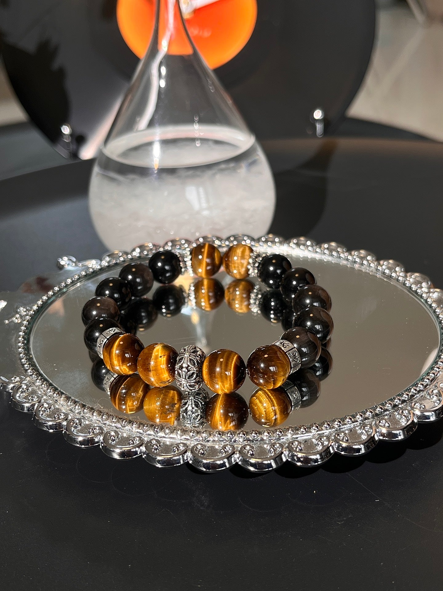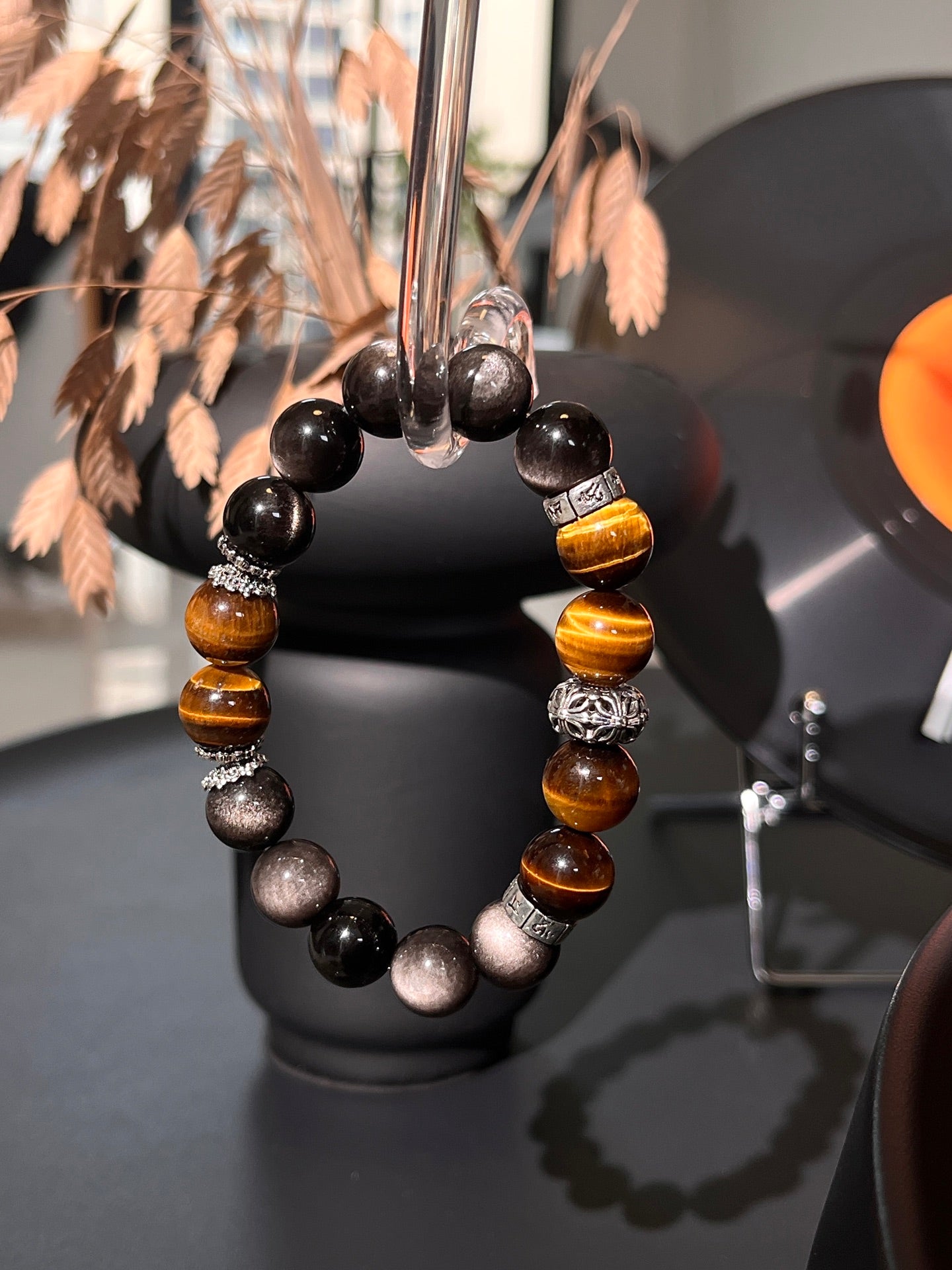Men's style, Silver Obsidian / Yellow Tiger Eye