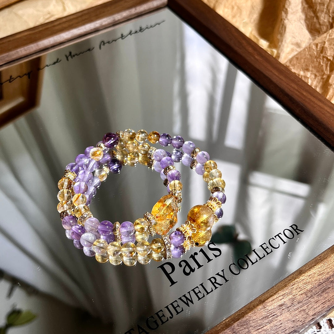 Emotional balance (Lavender Amethyst soothing × Yellow Pagoda Crystal yang energy harmonization)