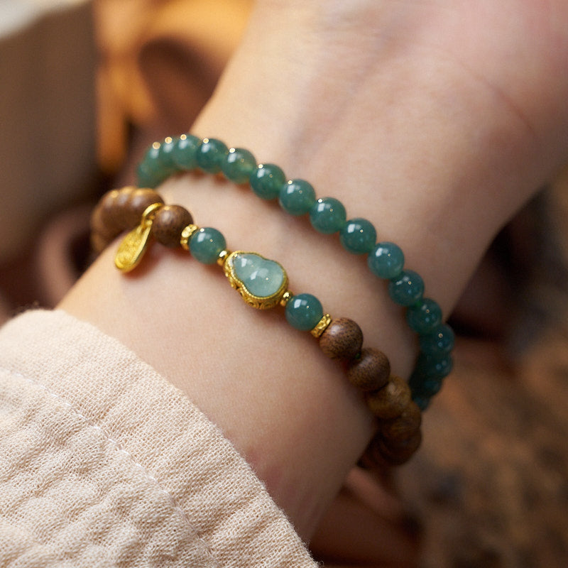 6mm Blue Water Jadeite / Agarwood / Blue Water Gourd / Zhajiram Bracelet